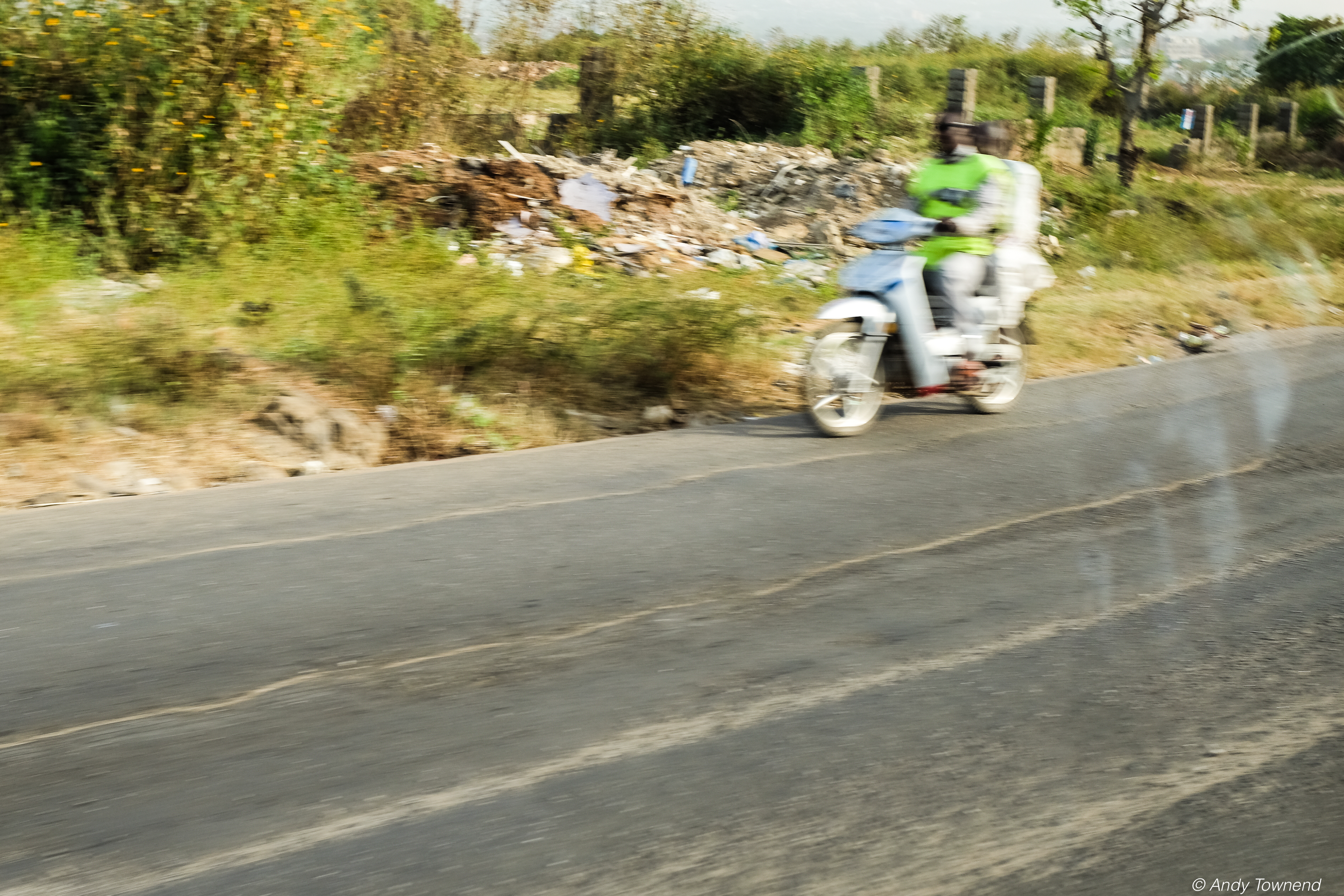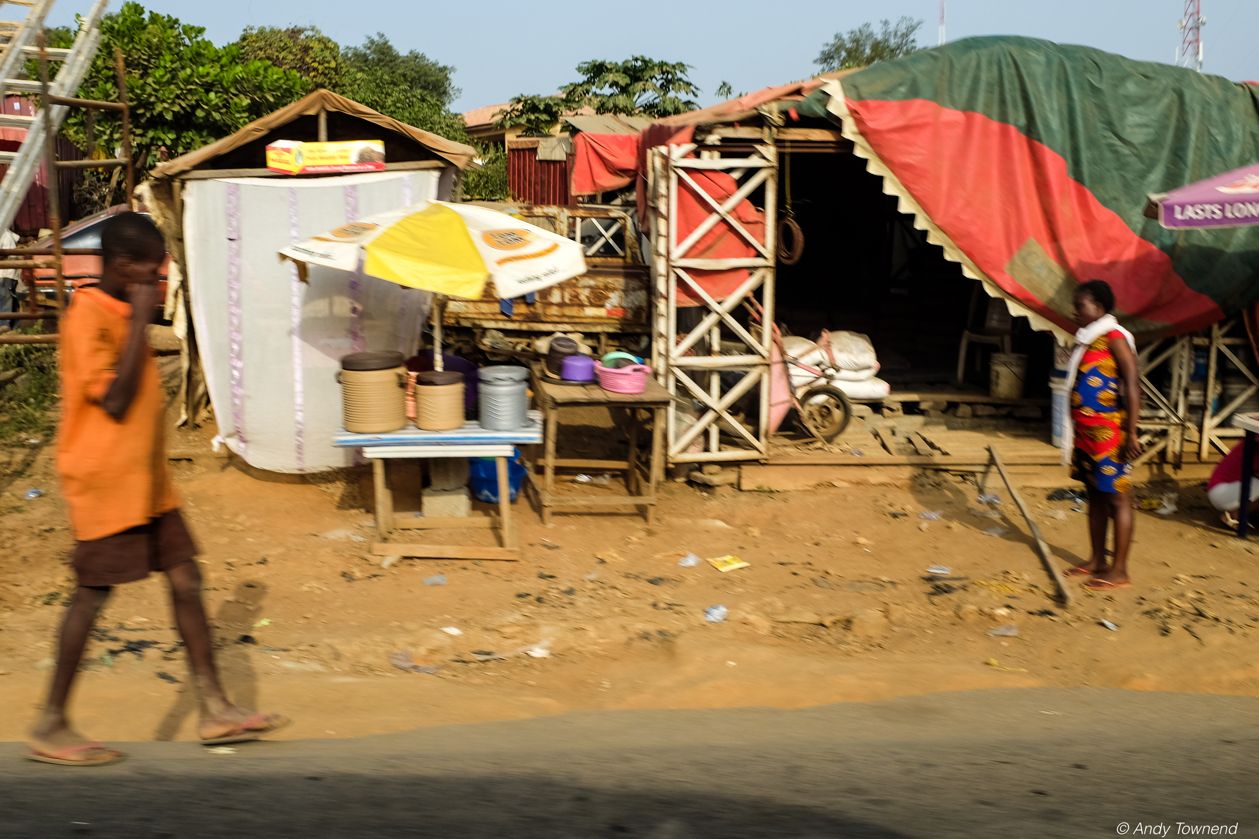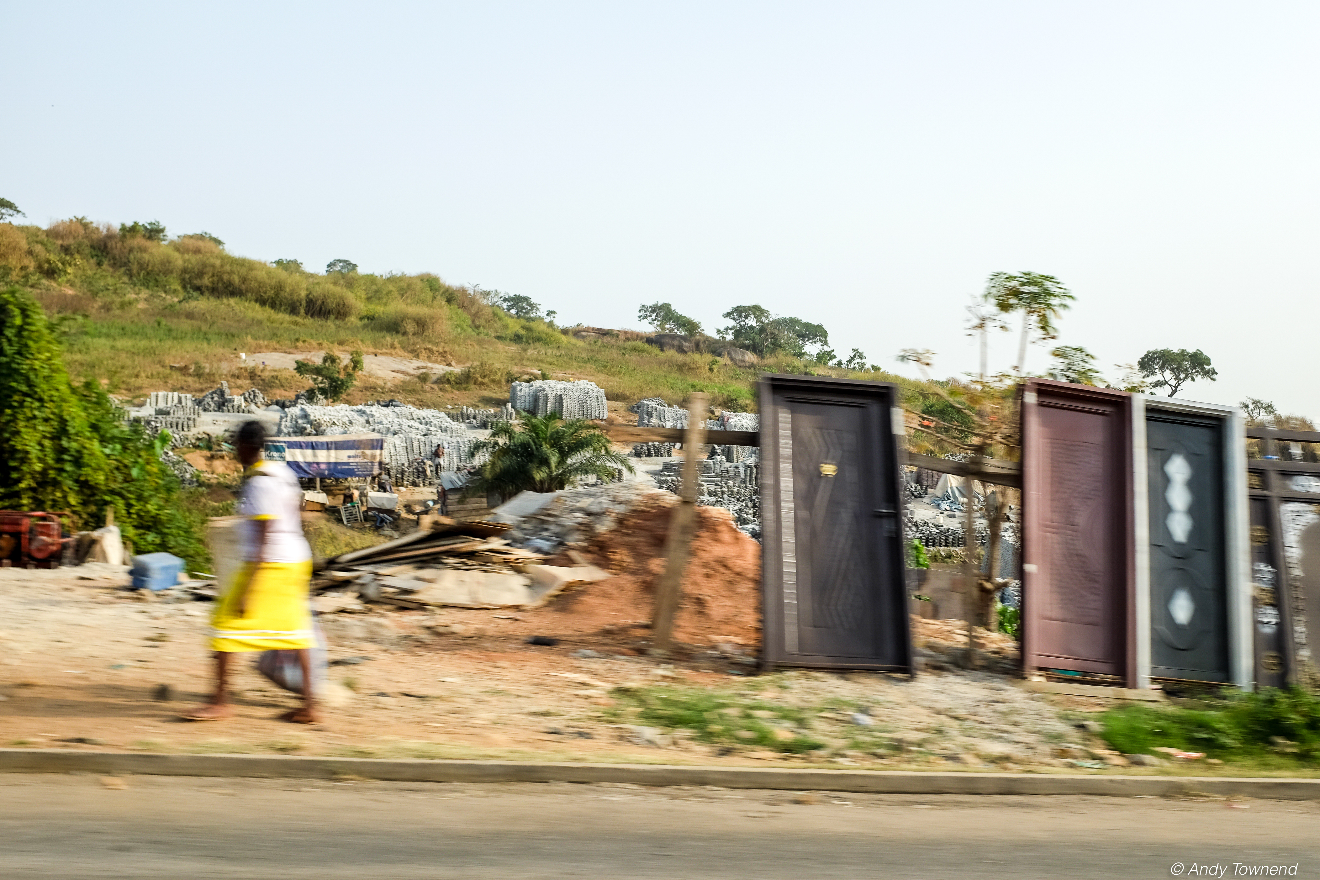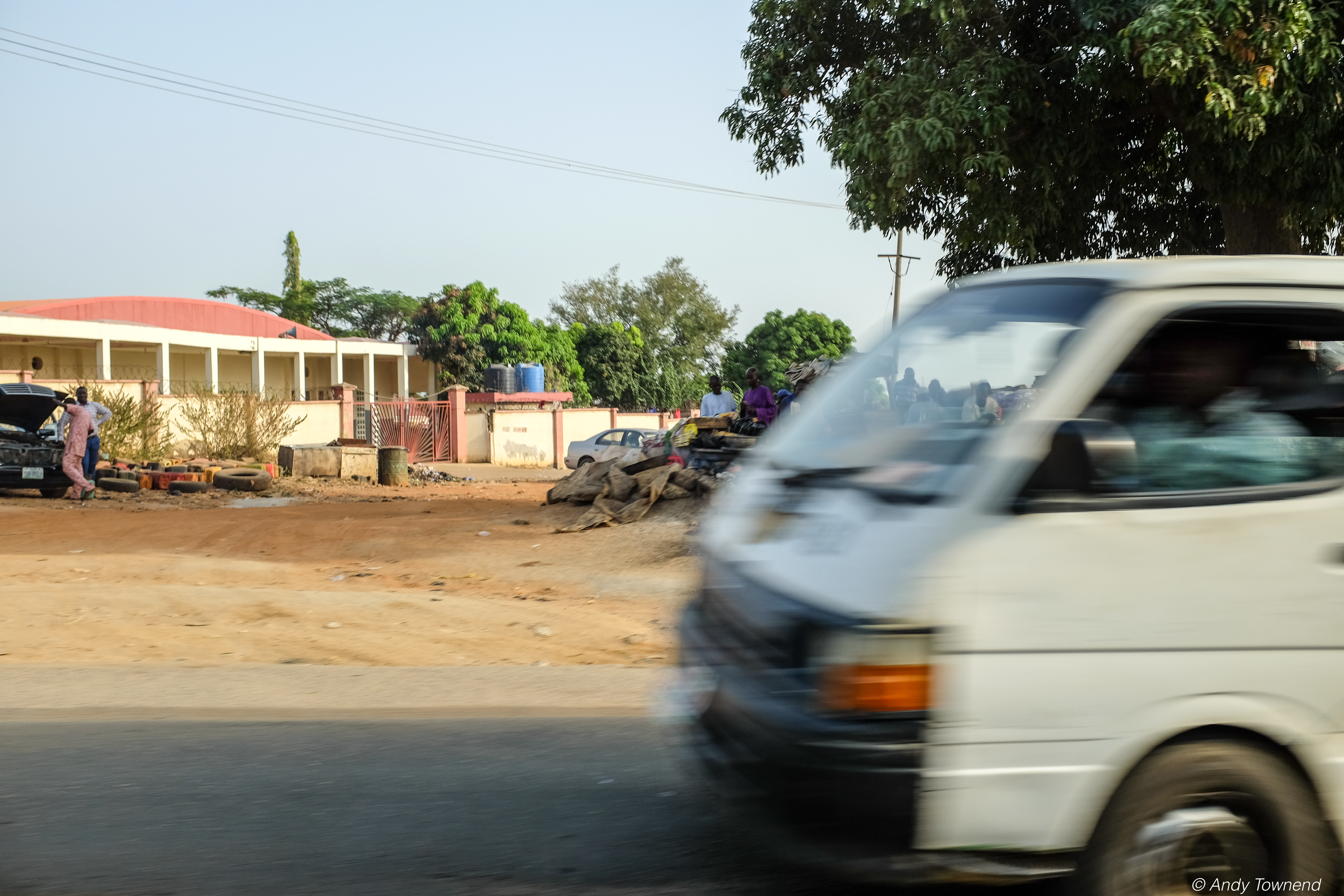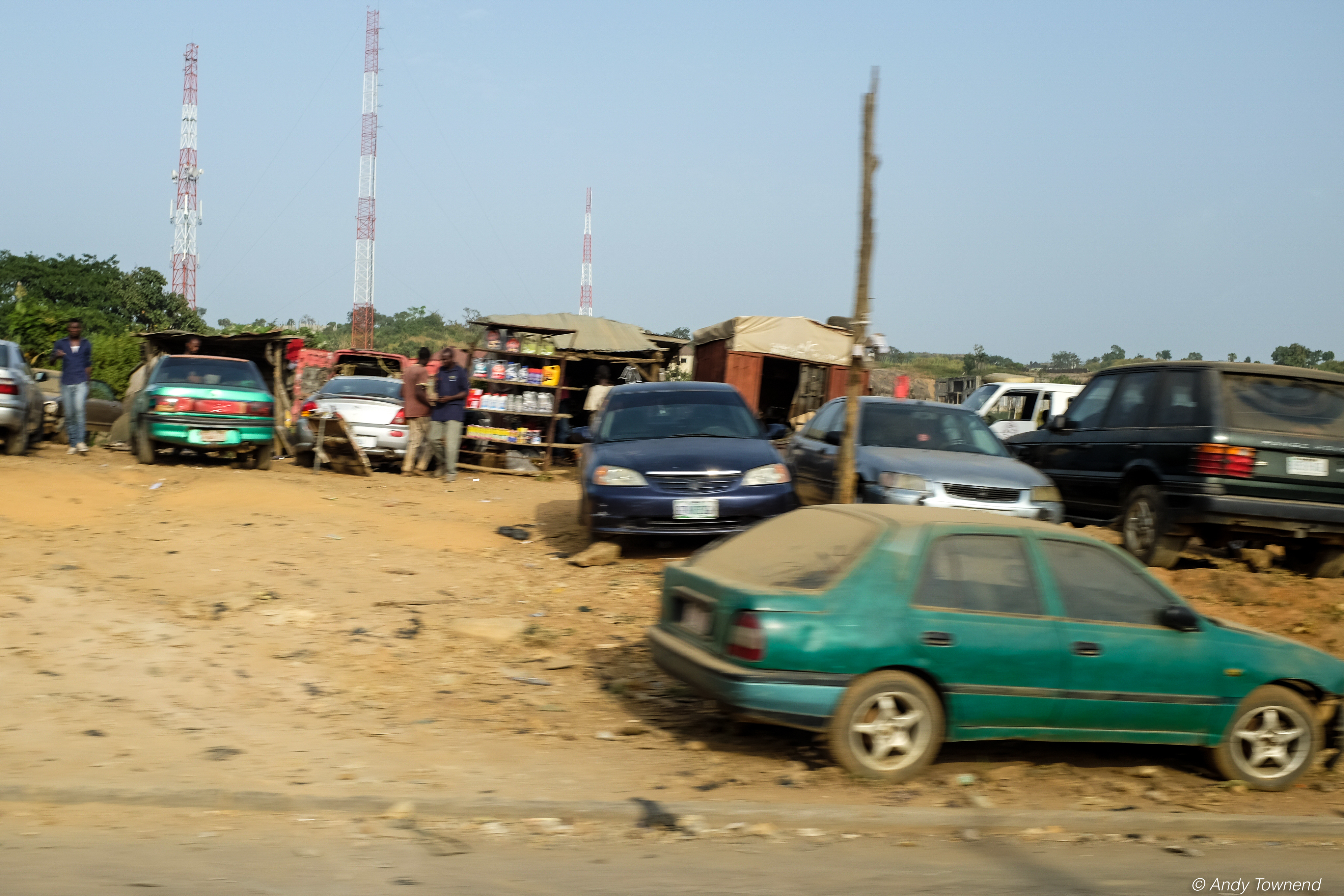 A series of shots taken through the window of a car.